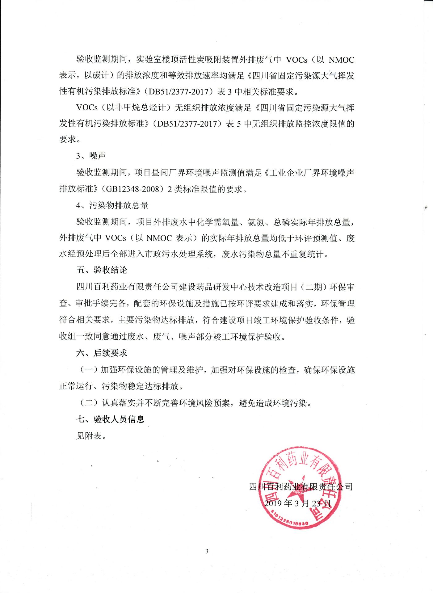根据《国务院关于建设项目竣工环境保护管理条例的决定》以及环保部《建设项目竣工环境保护验收暂行办法》的公告(国环规环评[2017]4号)现将《四川乐动登陆入口-乐动online(中国)有限责任公司药品研发中心技术改造项目(二期)竣工环保验收监测报告》及验收意见公示如下: